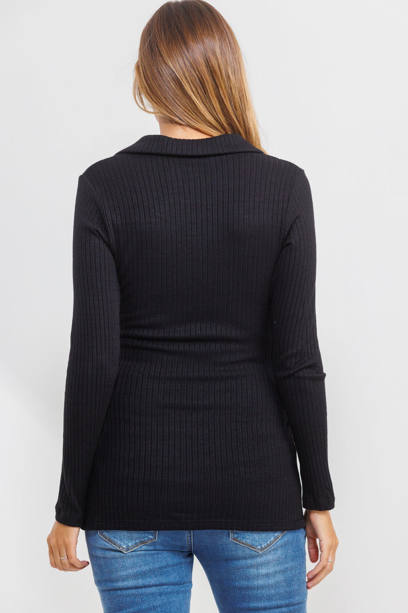 Collared Ribbed Maternity Top- Black